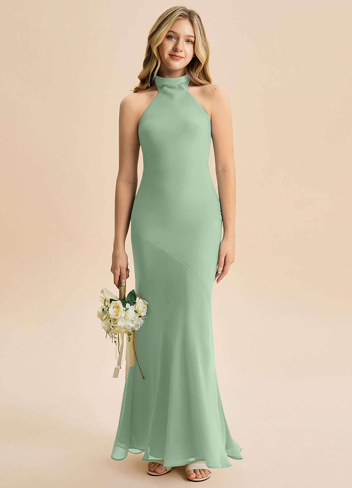 Vestido Matchá de Chiffon de sereia com Pescoço alto
