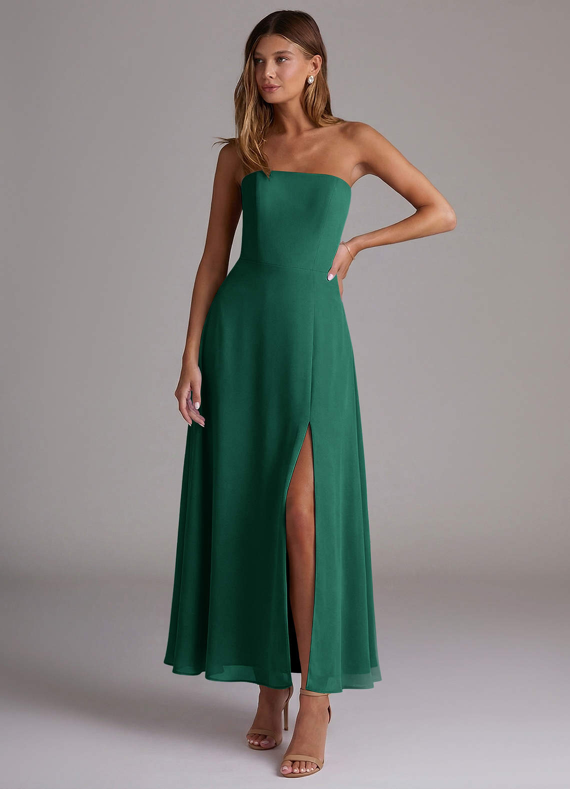 Vestido Esmeralda de Chiffon de Linha A com Sem alças