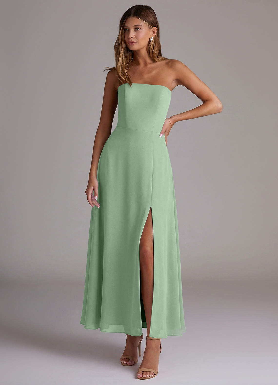 Vestido Matchá de Chiffon de Linha A com Sem alças