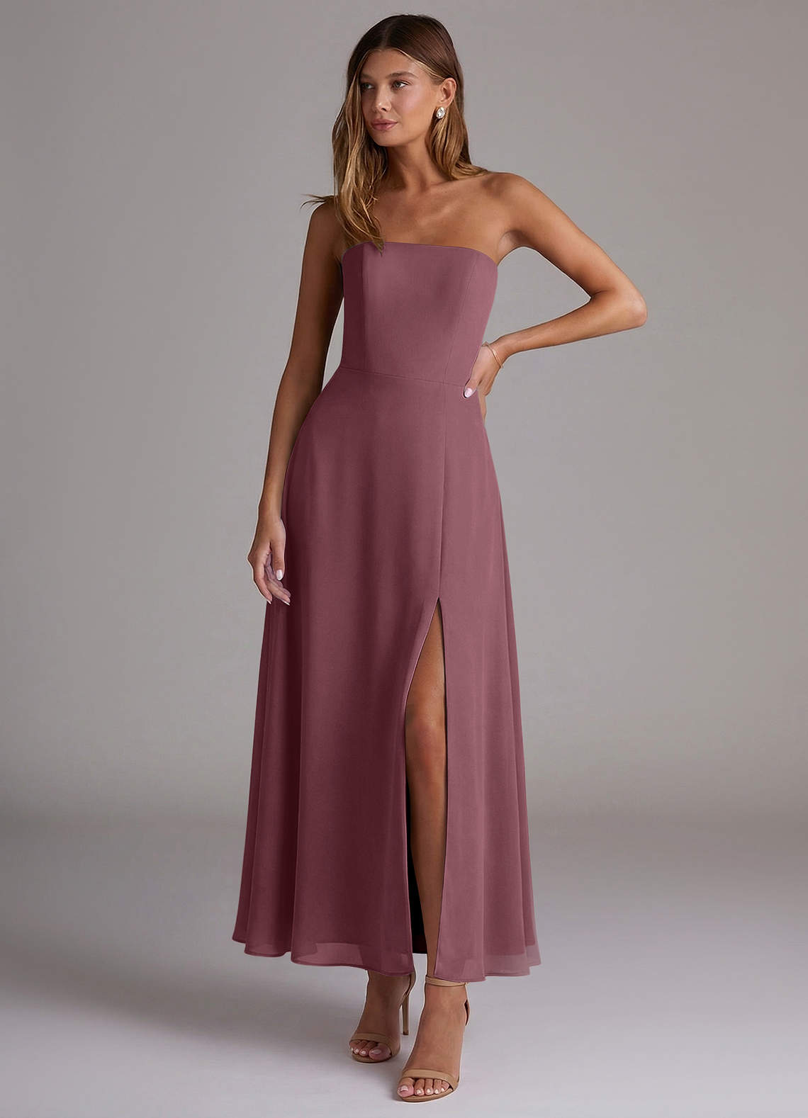 Vestido Sangria de Chiffon de Linha A com Sem alças