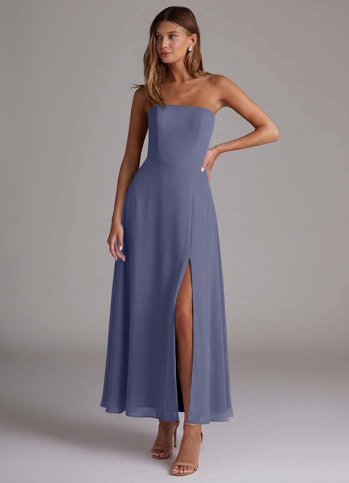 Vestido Tormentoso de Chiffon de Linha A com Sem alças