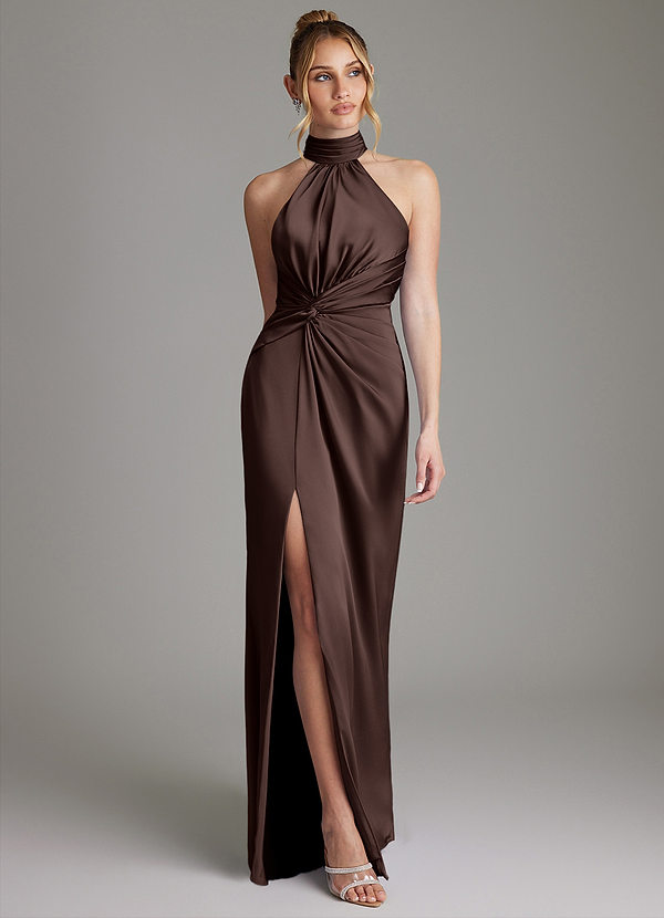 Linie A Plisat Satin elastic Lungime până la podea Rochie