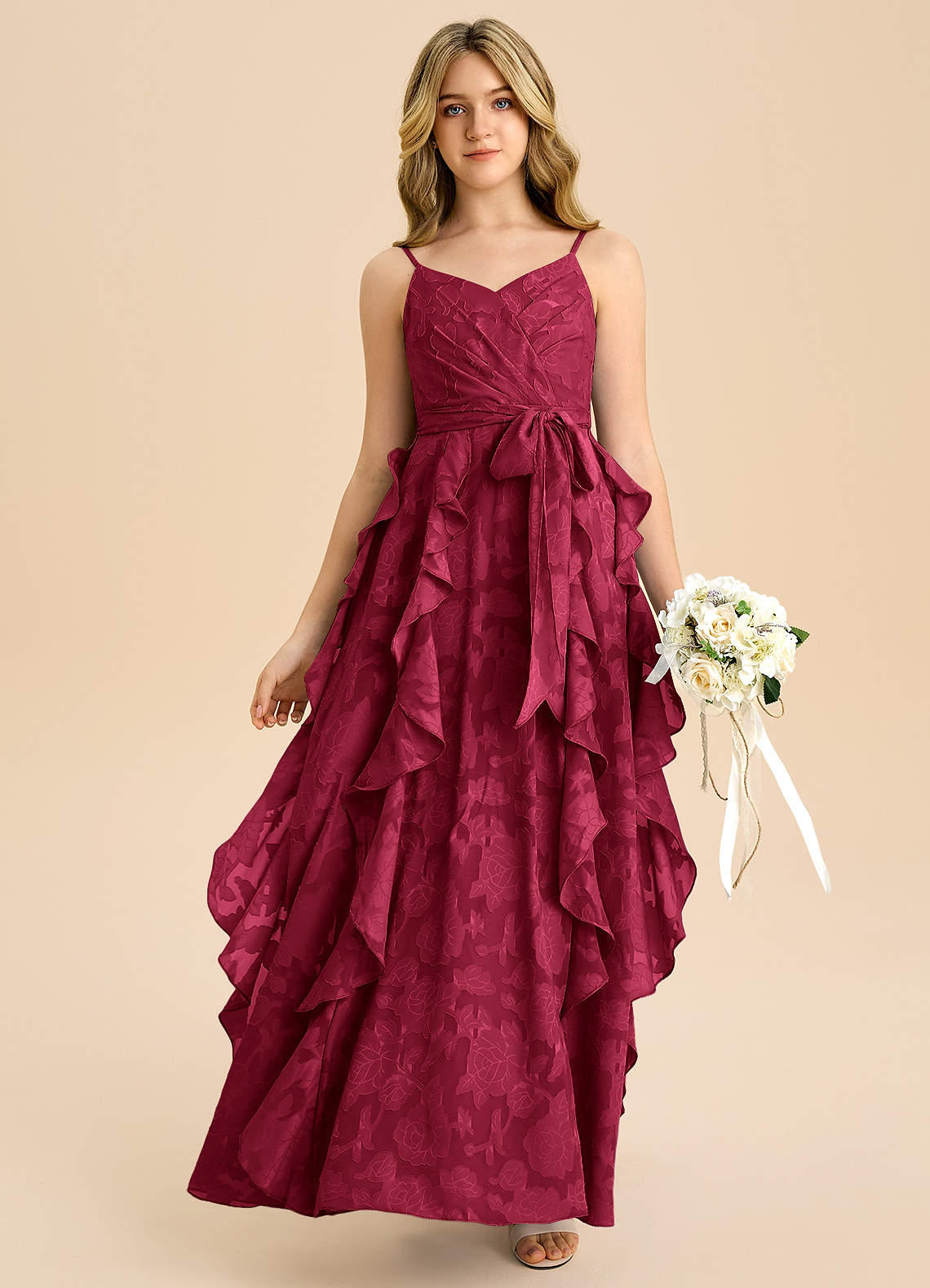 Linie A Plisat Floral Burnout Lungime până la podea Domnișoară de onoare junioră Rochie