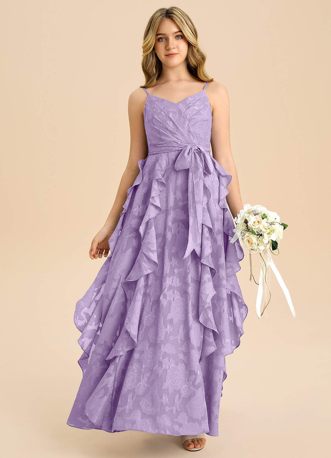 Linie A Plisat Floral Burnout Lungime până la podea Domnișoară de onoare junioră Rochie