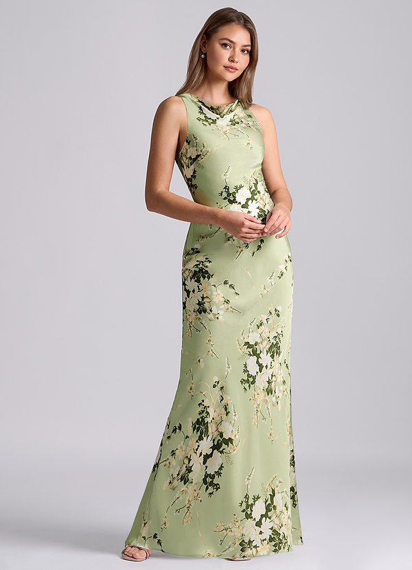 Klä av Sjöjungfru i Stretch Satin Hög hals Blommiga Rankor