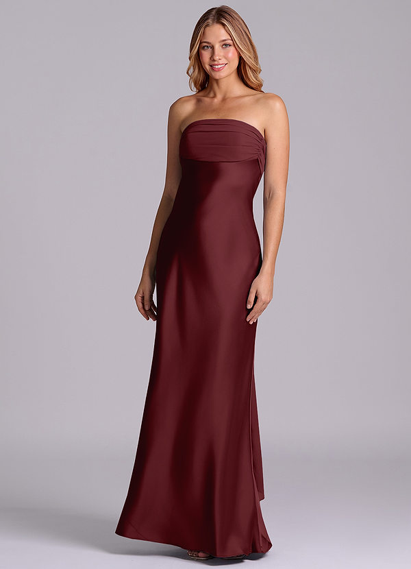 Klä av A-Linje i Stretch Satin Plisserad Cabernet