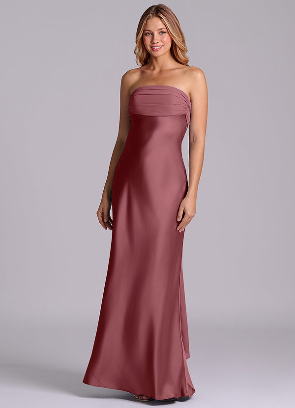 Klä av Sjöjungfru i Stretch Satin Axelbandslös Desert Rose Konvertibel