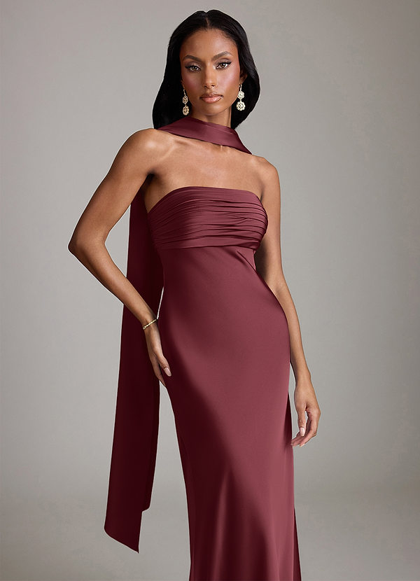 Inspired by the depth and complexity of your favorite wine, Merlot is a dark berry color that's close to maroon. A timelessly elegant color, Merlot is a go-to color for weddings that take place during colder months. Whether it's a long-sleeve lace gown or a strapless floor-sweeping number, Merlot delivers a flattering and sophisticated look.