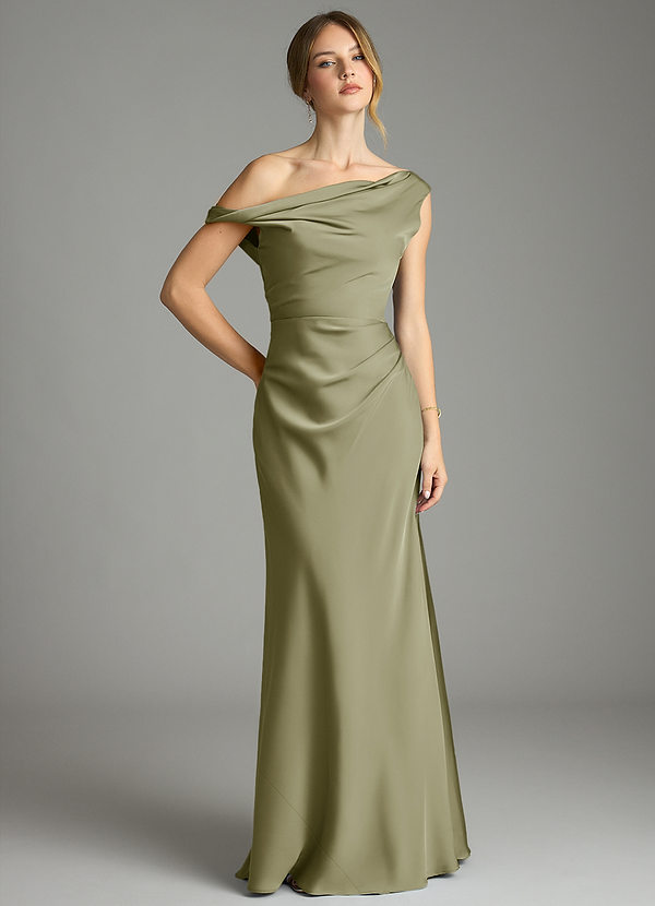 Klä av Sjöjungfru i Stretch Satin Ena axeln Oliv