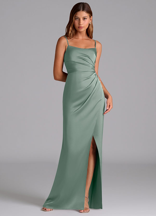 Klä av A-Linje i Stretch Satin Plisserad Silversalvia