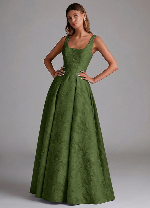 Klä av A-Linje i Blommig Utbrändhet Plisserad Oliv