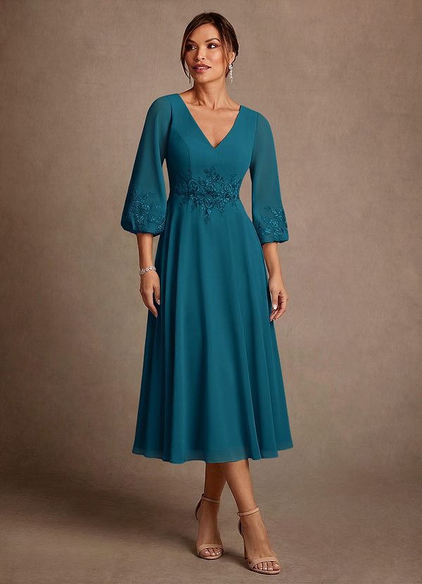 Klä A-Line i Chiffong V-ringad spets Bläckblå