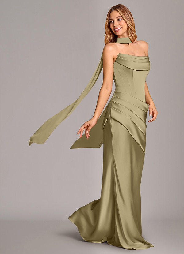 Klä av Sjöjungfru i Stretch Satin Axelbandslös Mossgrön Konvertibel