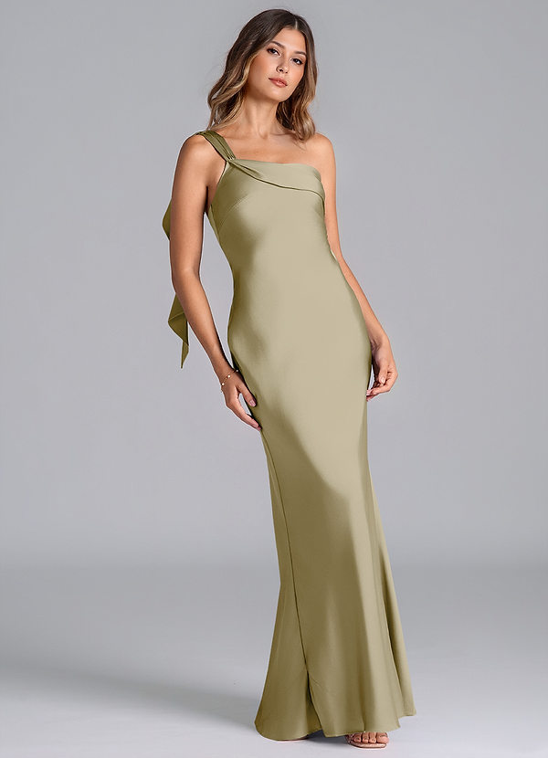 Klä av A-Linje i Stretch Satin Ena axeln Mossgrön