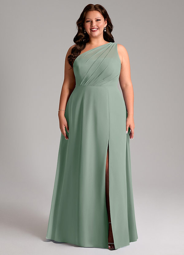Klä av A-Linje i Stretch Satin Ena axeln Agave