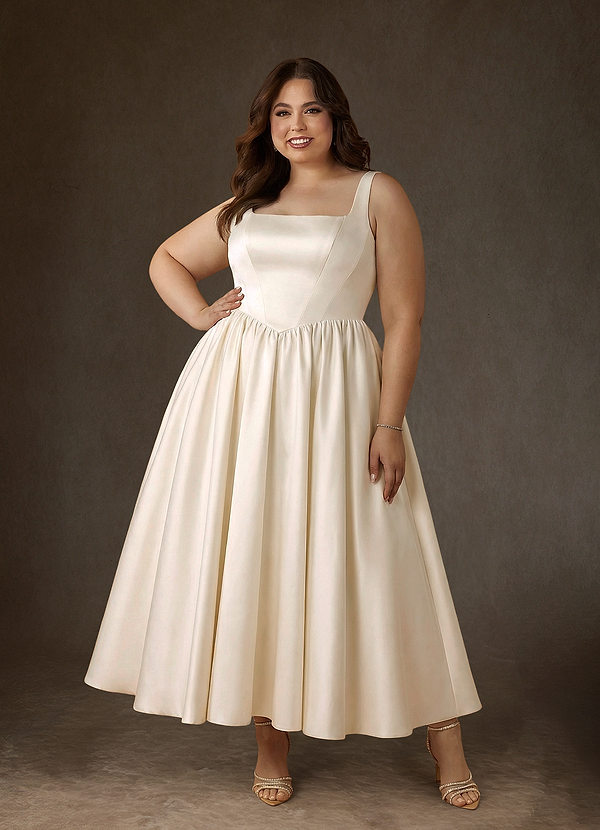Klä av A-Linje i Satin Älskling Halsringning Champagne