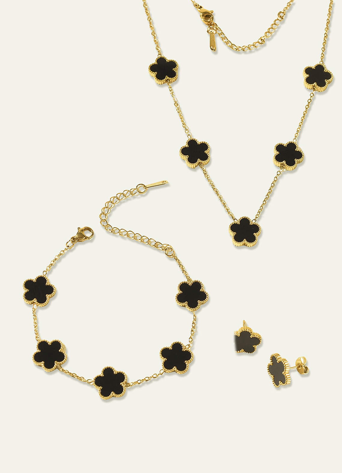 Smyckeset med femklöver i 18K guldplätering i rostfritt stål