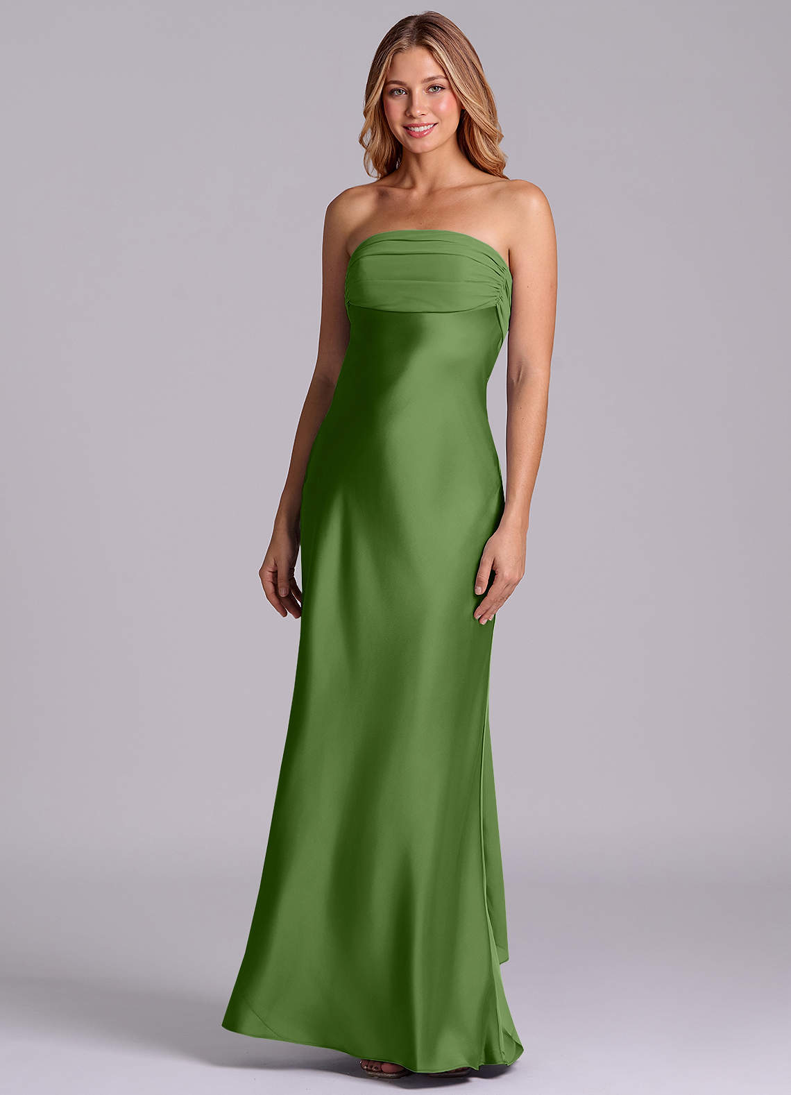 Klä av Tubklänning i Stretch Satin Axelbandslös Basilika