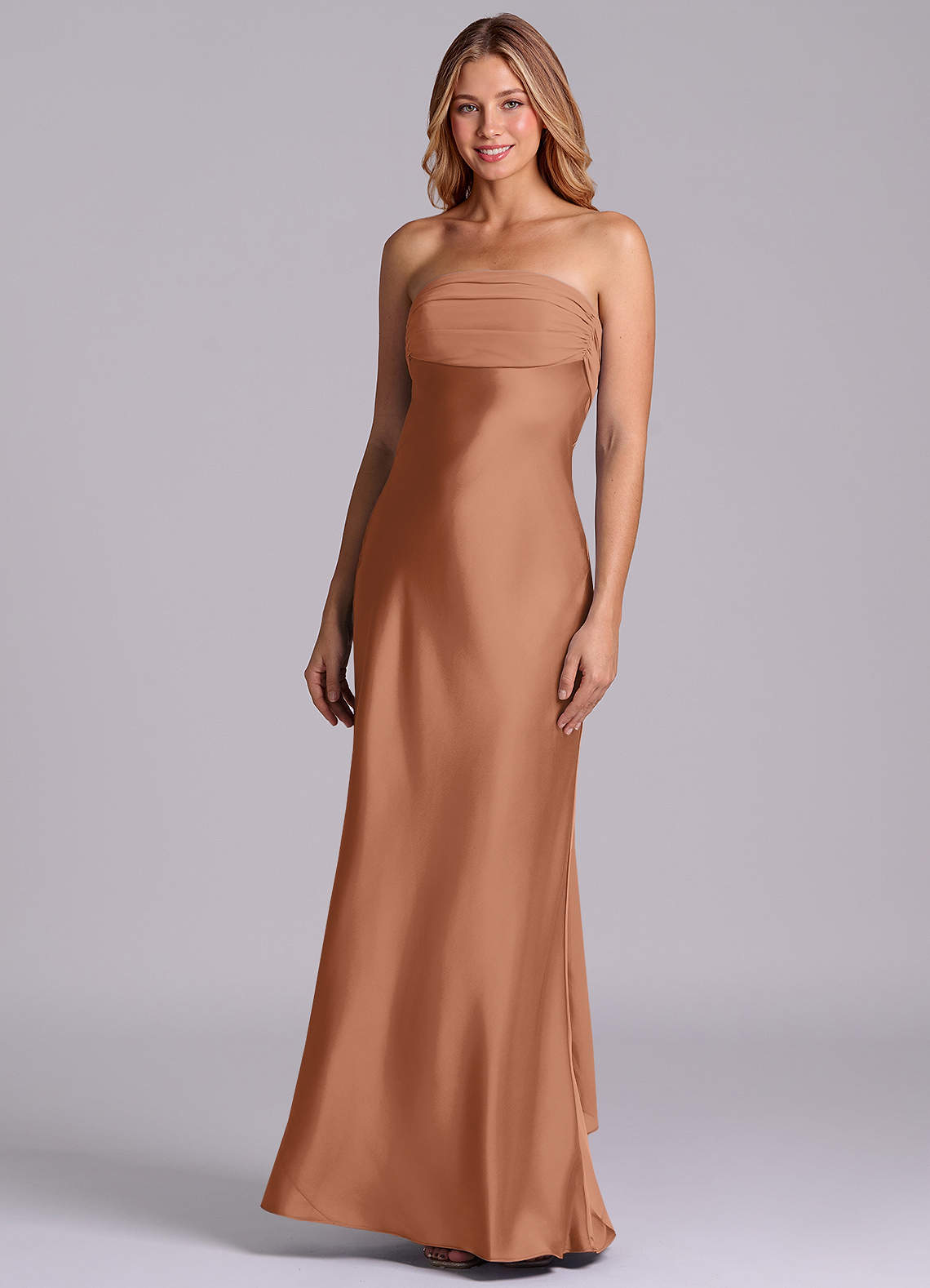 Klä av Tubklänning i Stretch Satin Axelbandslös Bronzer