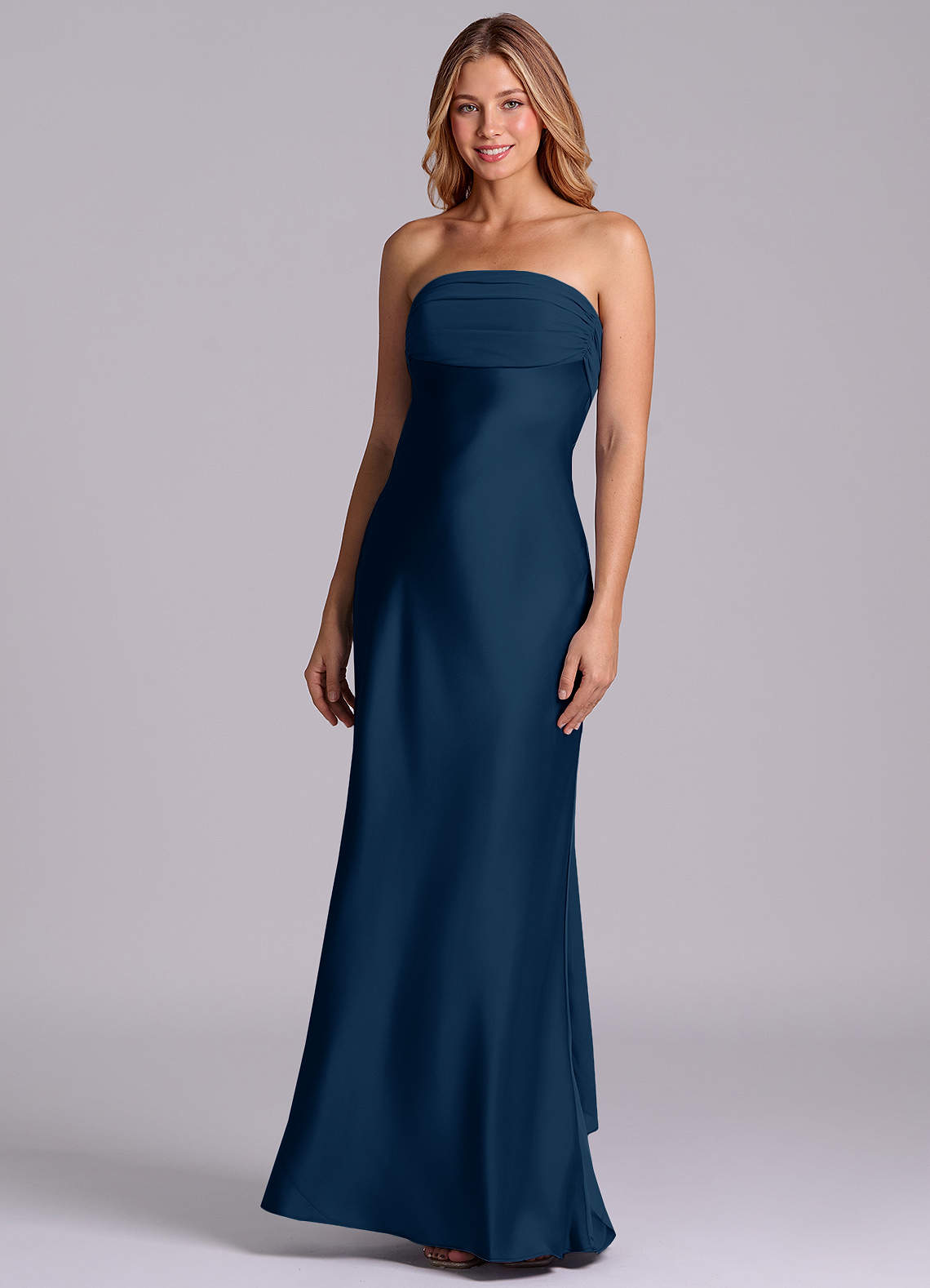 Klä av Tubklänning i Stretch Satin Axelbandslös Mörk Marinblå