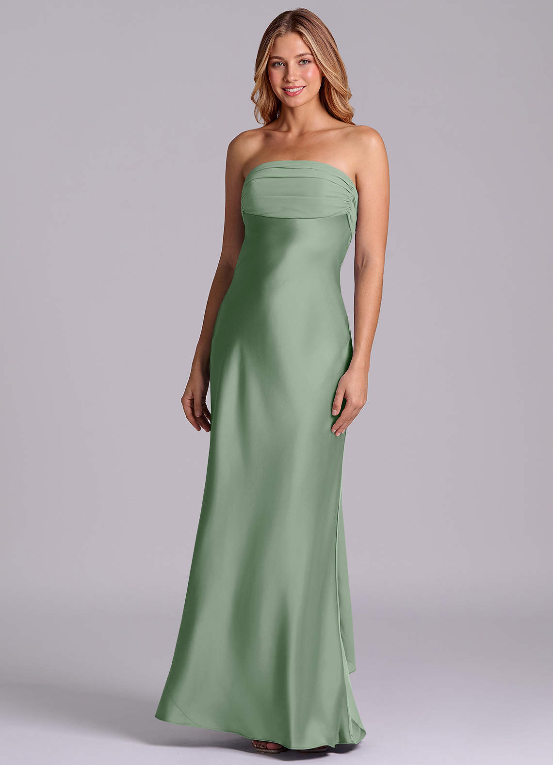 Klä av Tubklänning i Stretch Satin Axelbandslös Matcha