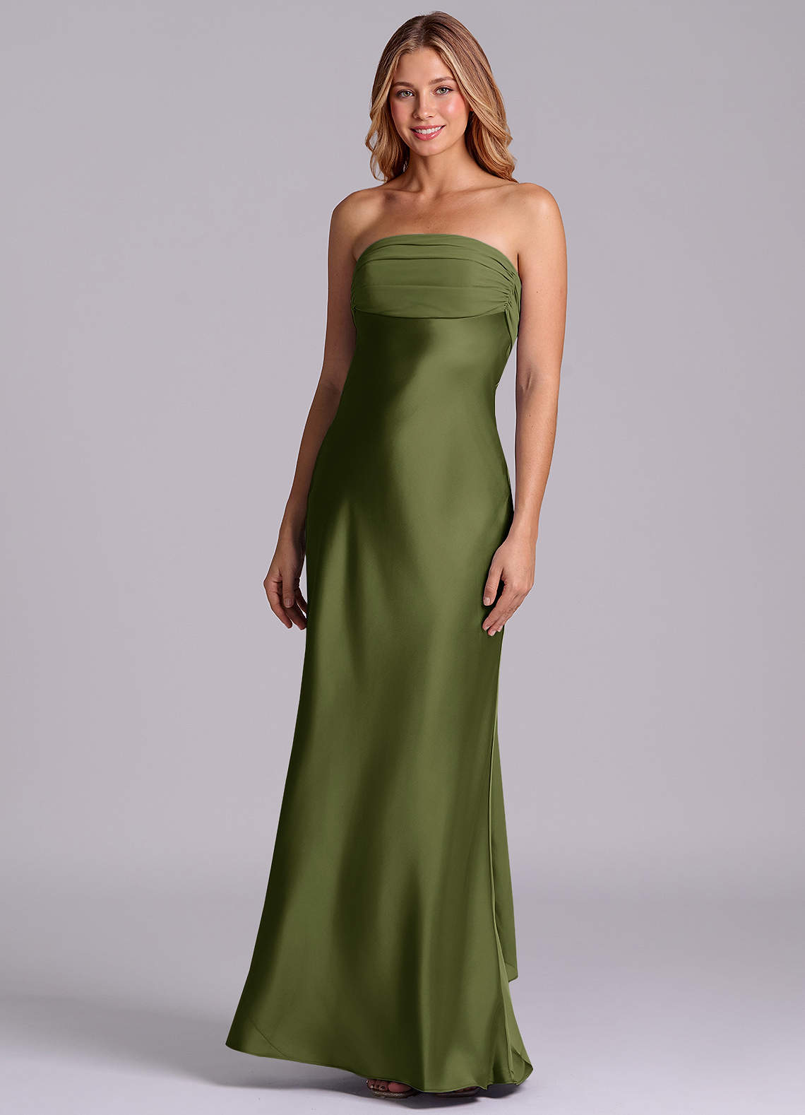 Klä av Tubklänning i Stretch Satin Axelbandslös Oliv