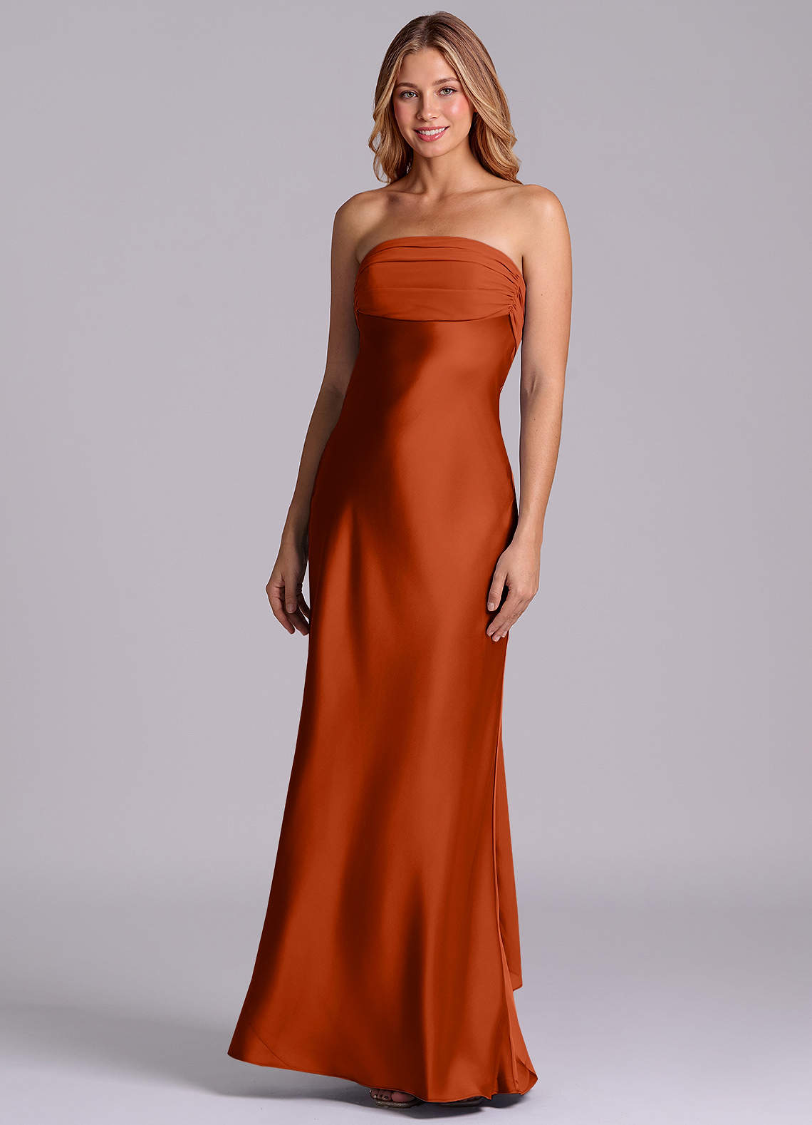 Klä av Tubklänning i Stretch Satin Axelbandslös Paprika