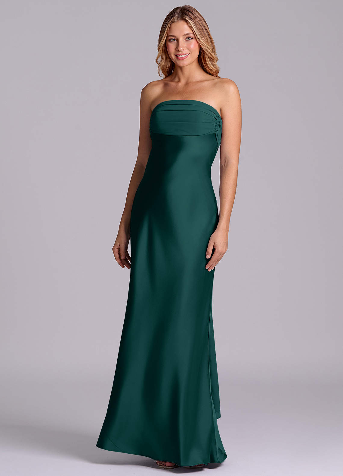 Klä av Tubklänning i Stretch Satin Axelbandslös Tallgrön