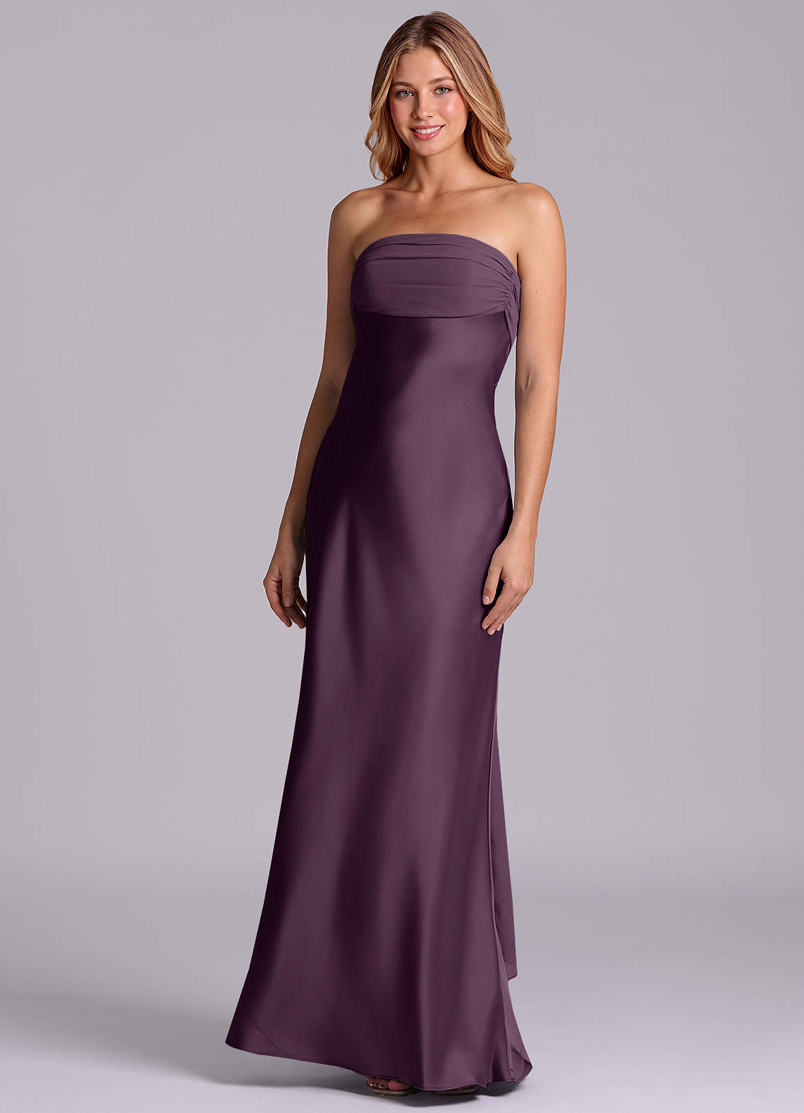 Klä av Tubklänning i Stretch Satin Axelbandslös Plommon