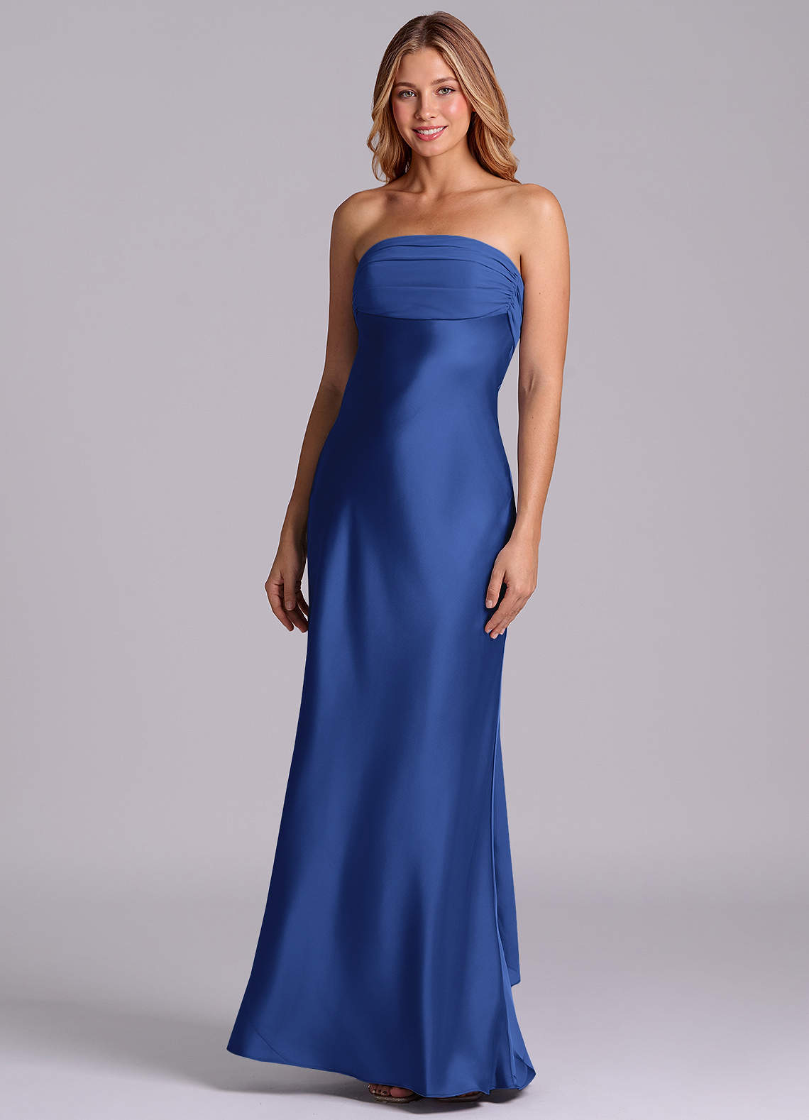 Klä av Tubklänning i Stretch Satin Axelbandslös Kungsblå
