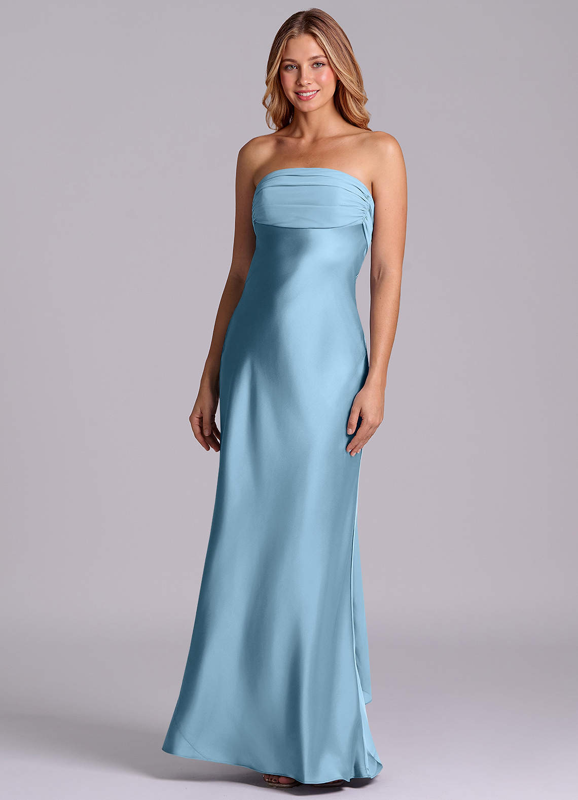 Klä av Tubklänning i Stretch Satin Axelbandslös Stålblå