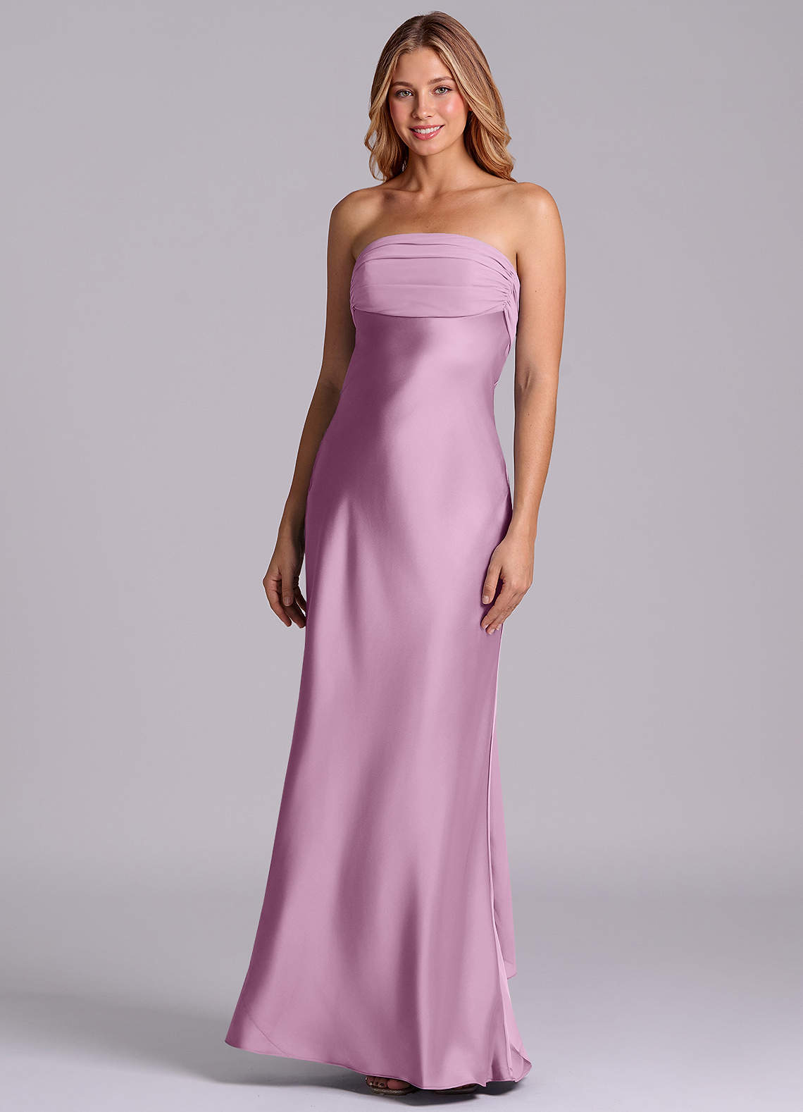 Klä av Tubklänning i Stretch Satin Axelbandslös Blåregn