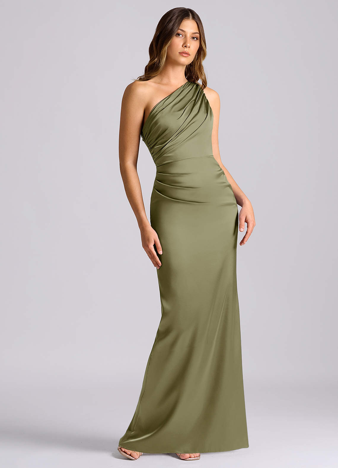 Klä av Sjöjungfru i Stretch Satin Ena axeln Pistasch