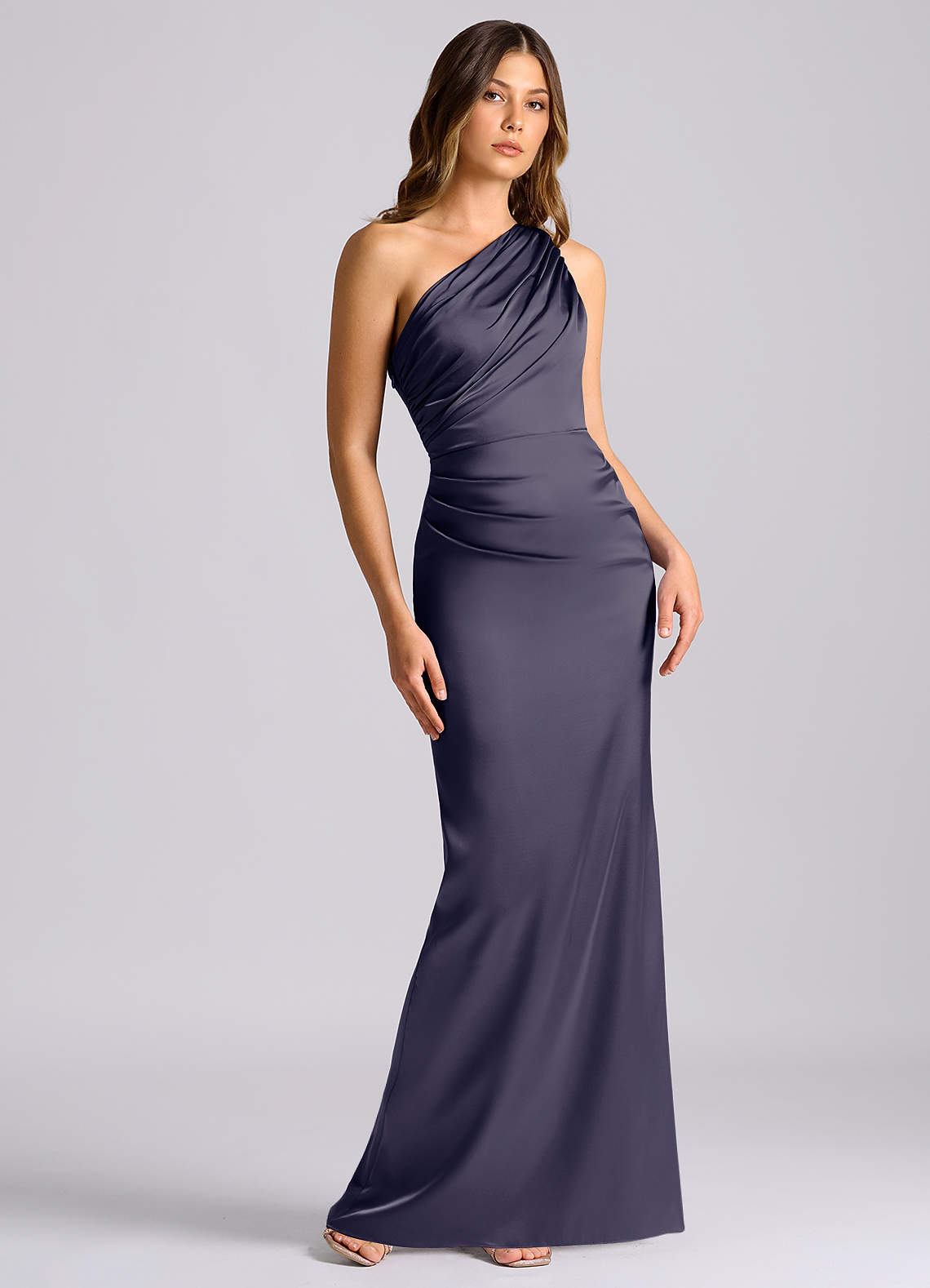 Klä av Sjöjungfru i Stretch Satin Ena axeln Stormig