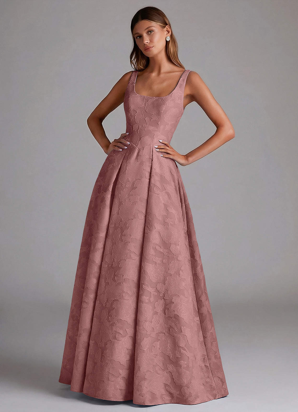 Klä av A-Linje i Blommig Utbrändhet Plisserad Dammig Ros