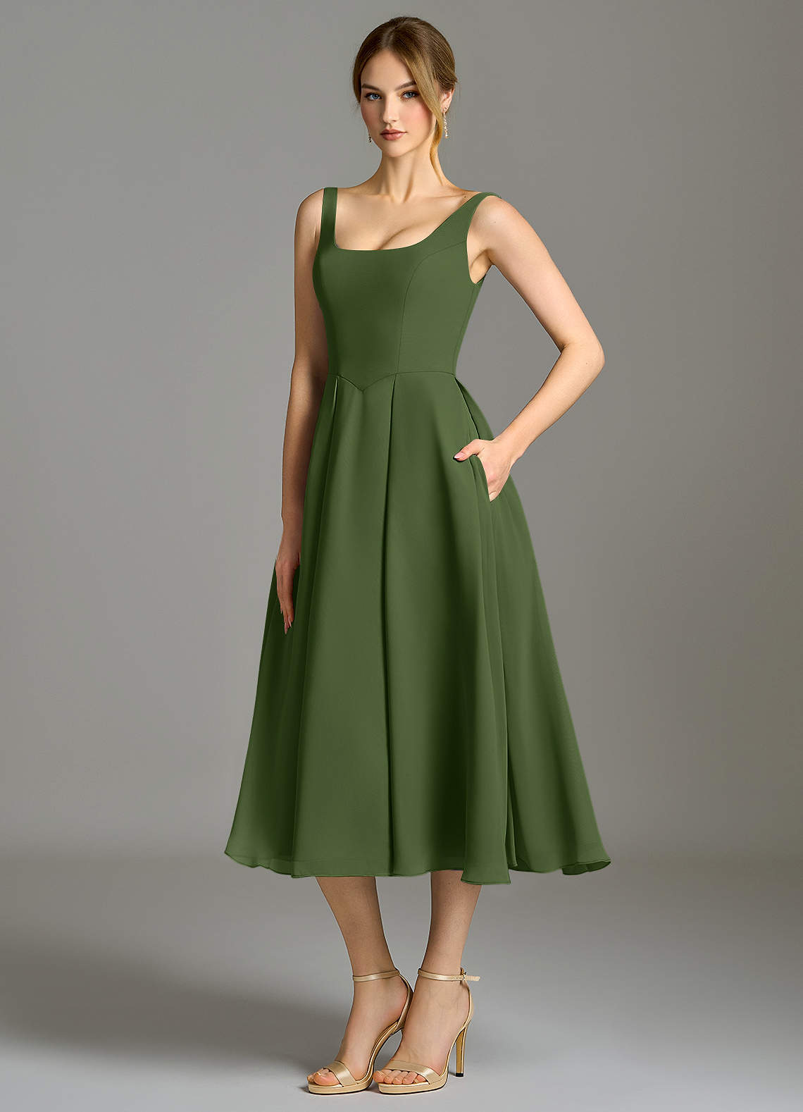 Klä av A-Linje i Chiffong Plisserad Oliv