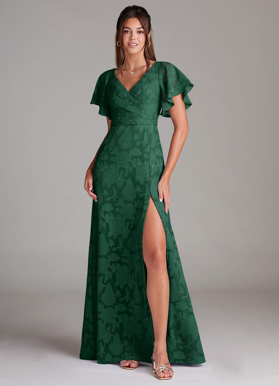 Klä av A-Linje i Blommig Utbrändhet Plisserad Mörkgrön