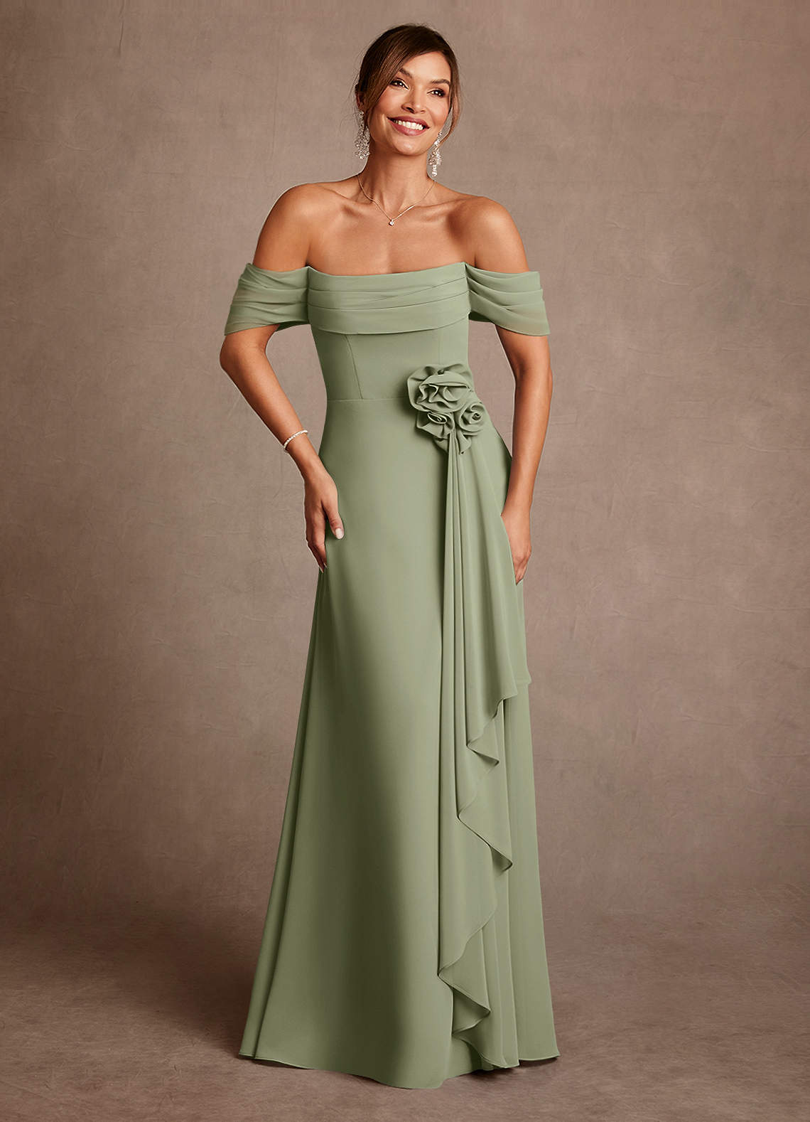Klä A-Line i Chiffong Av axeln Pistasch