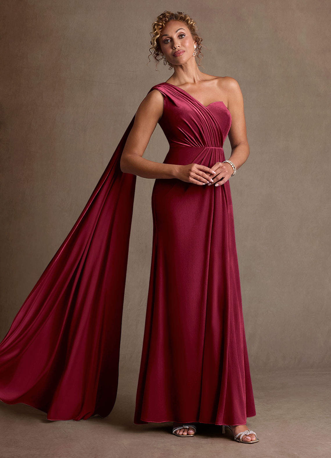 Klä Tubklänning i sammet Ena axeln Bourgogne
