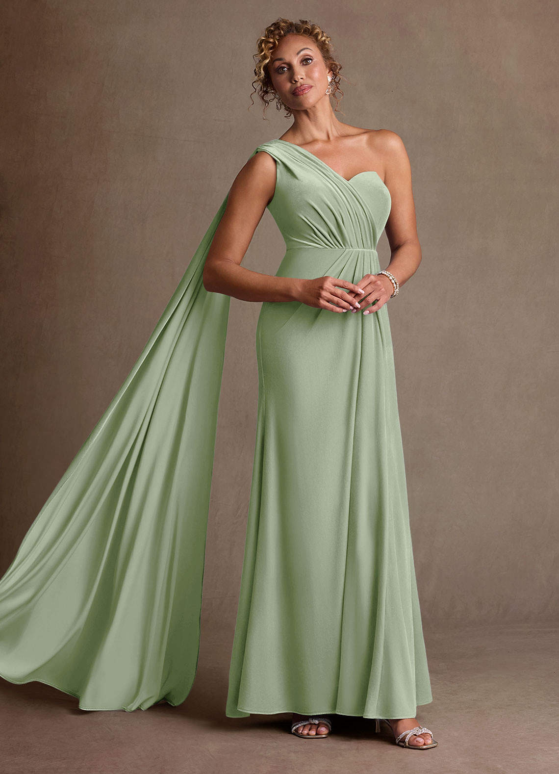 Klä Tubklänning i sammet Ena axeln Dusty Sage