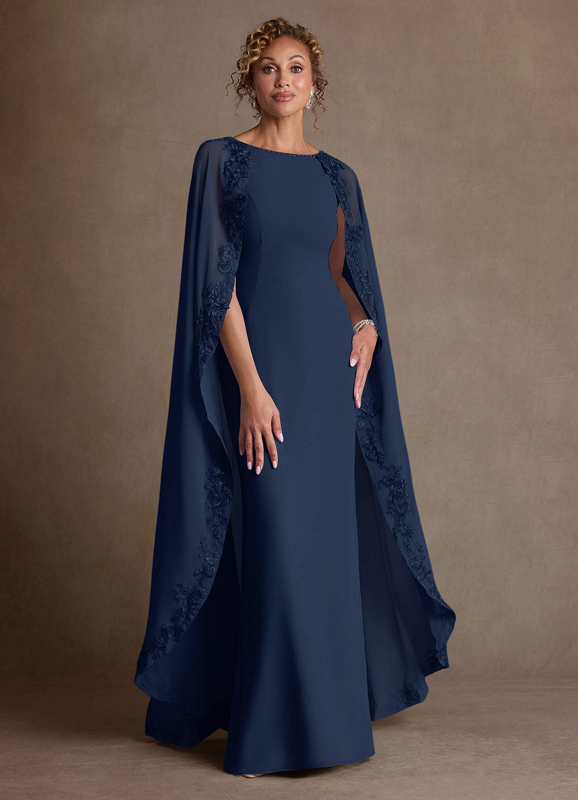 Klä Tubklänning i Chiffong Spets Mörk Marinblå