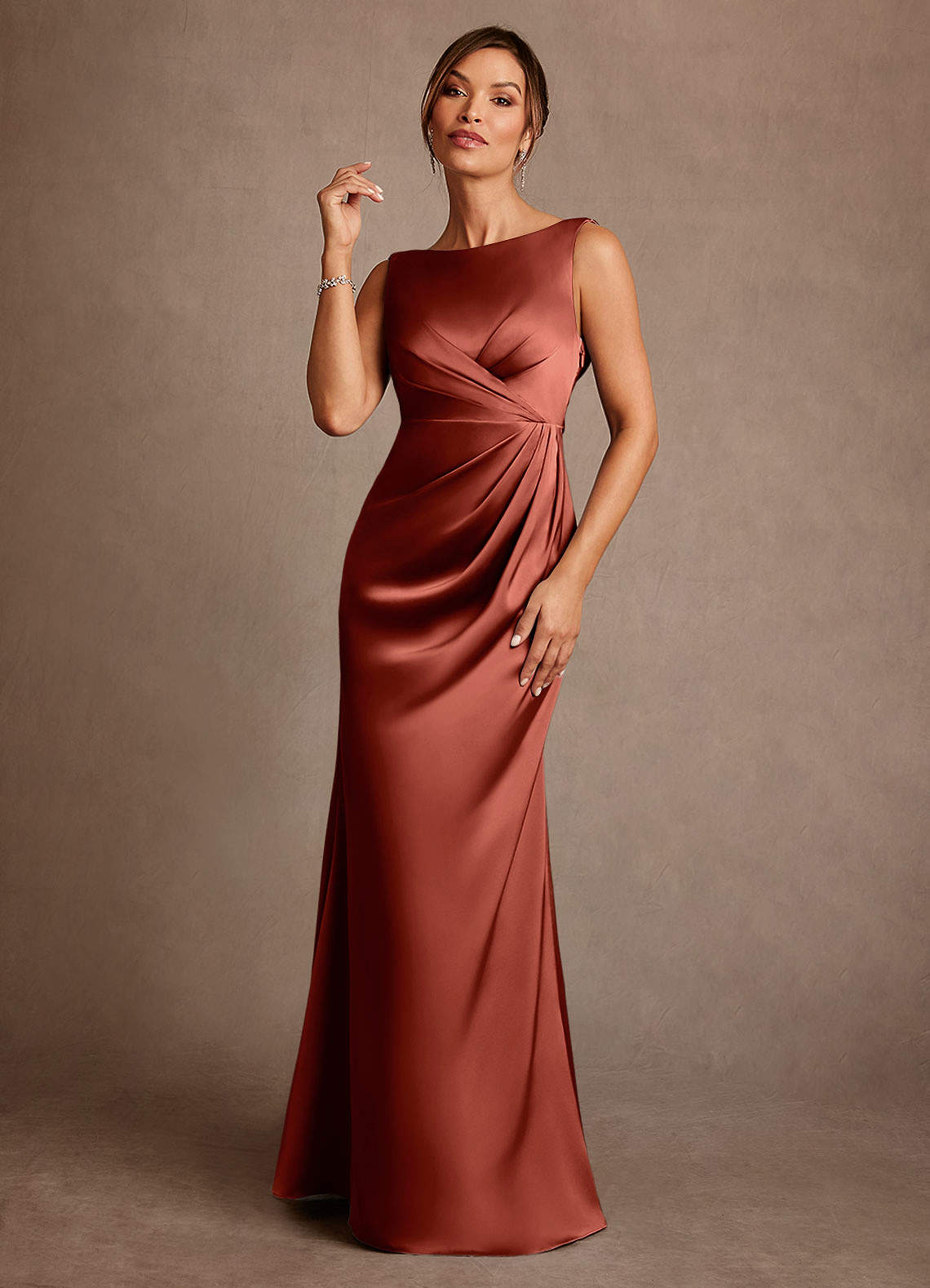 Klä A-Line i Stretch Satin Plisserad Terrakotta