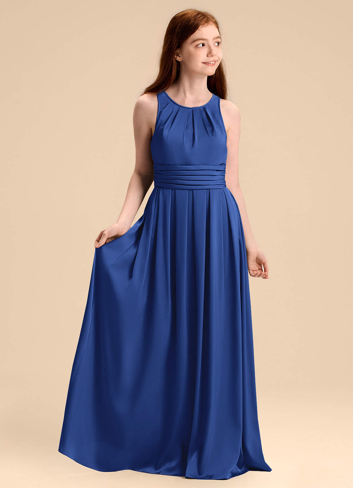 Klä av A-Line i Stretch Satin Plisserad
