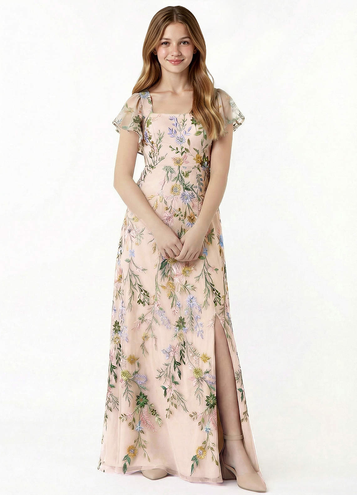 Klä av A-Line i 3D blommig broderad spets Rynkad