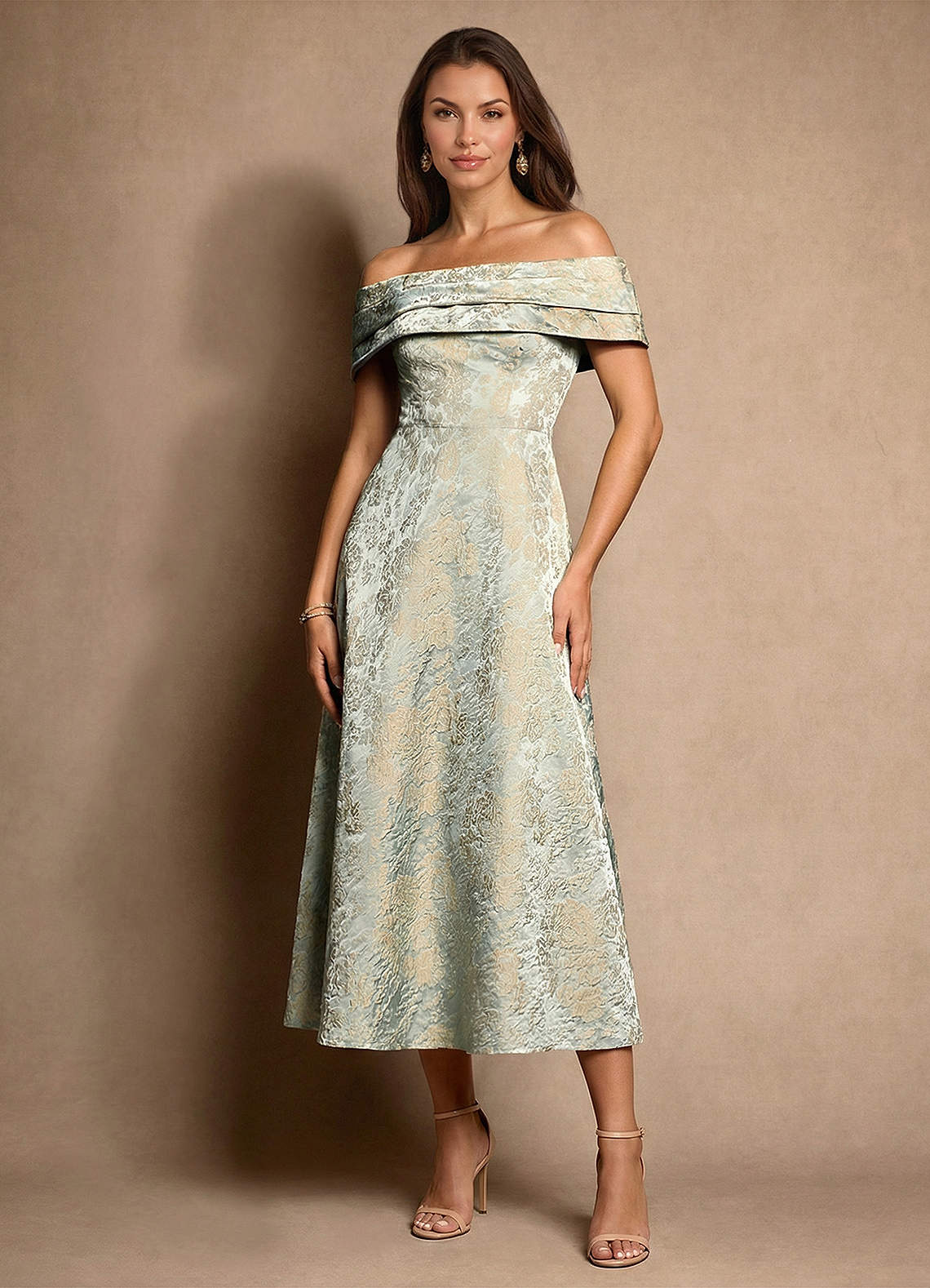 Klä A-Line i Jacquard Plisserad Vintageblå