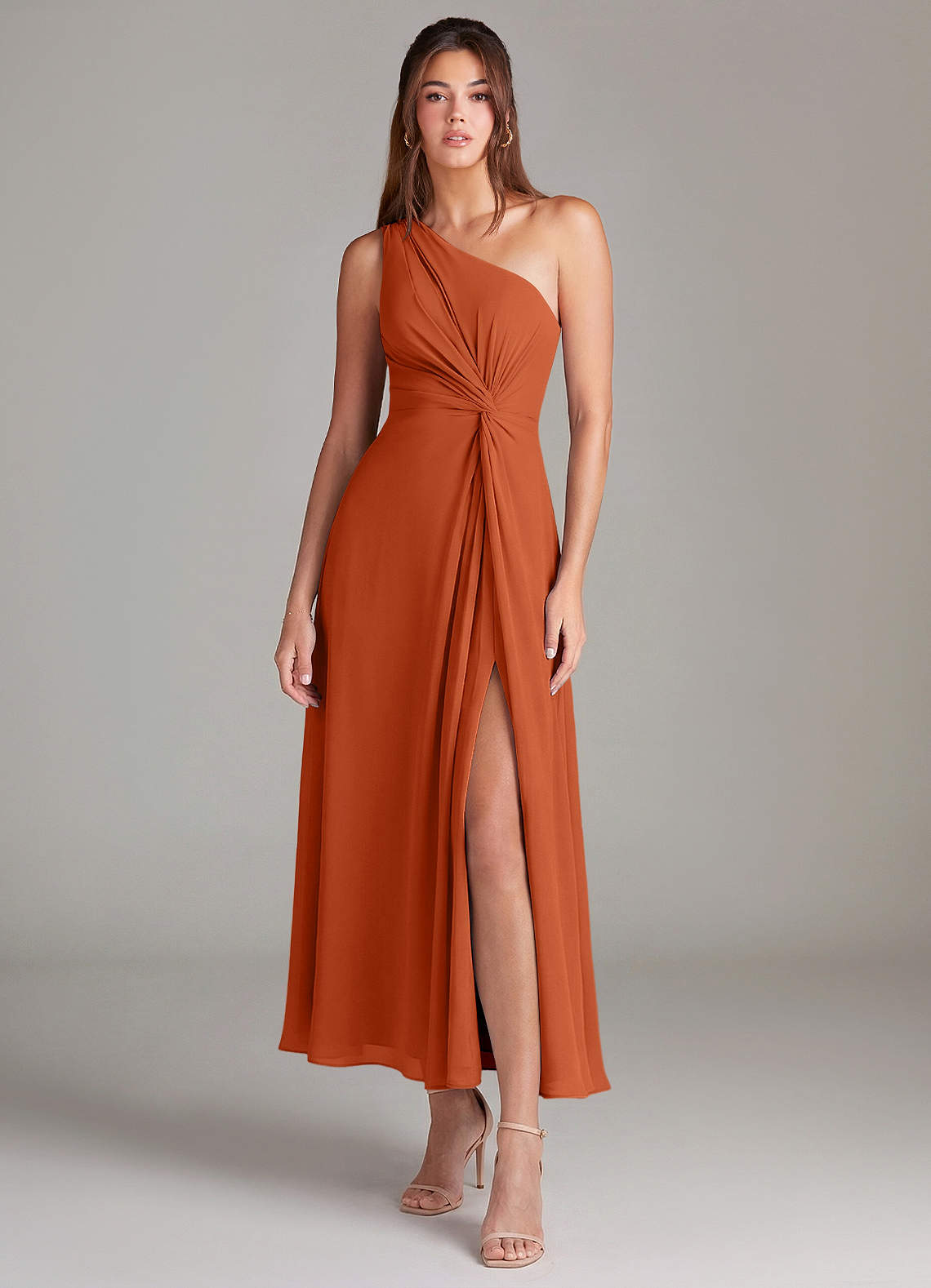 Klä av A-Linje i Chiffong Ena axeln Bränd Apelsin
