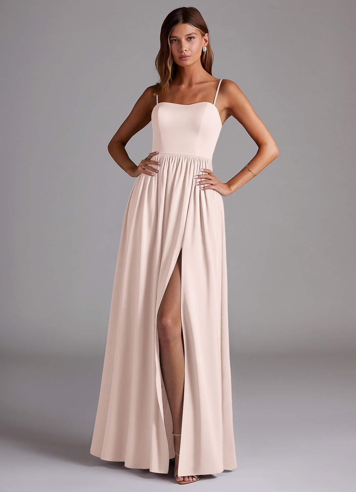 Klä av A-Linje i Stretch Satin Av axeln Rodnande Rosa Konvertibel
