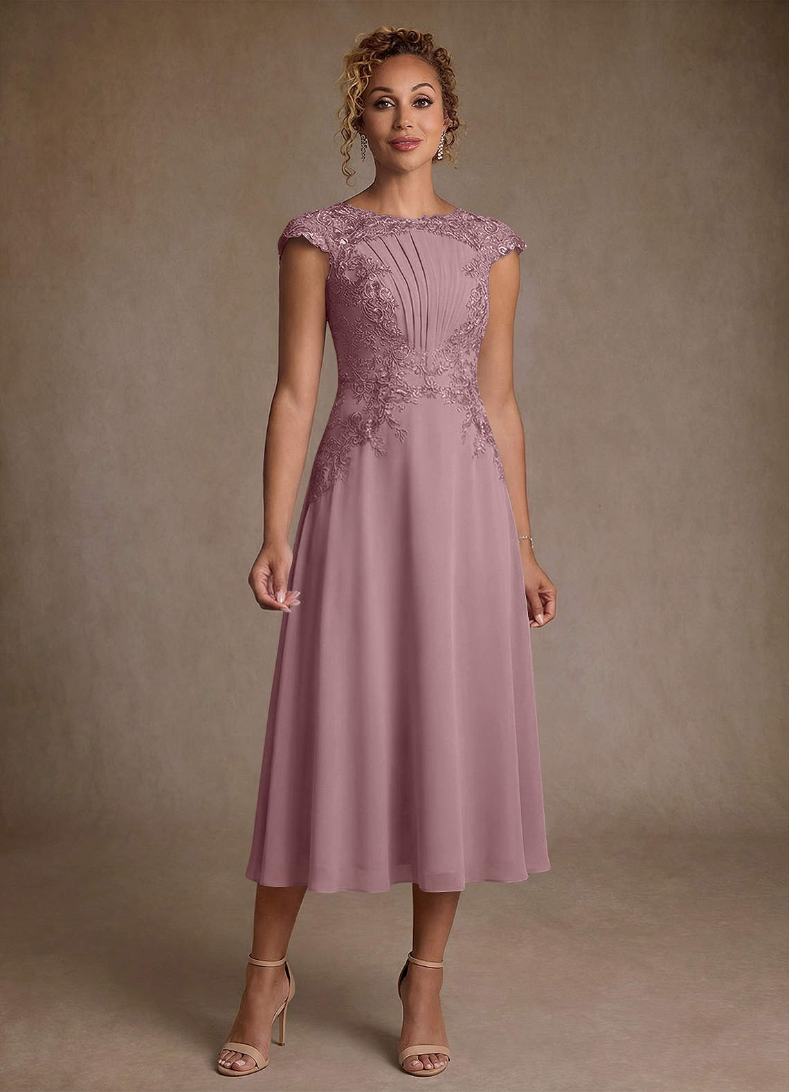 Klä A-Line i Chiffong Spets Dammig Ros