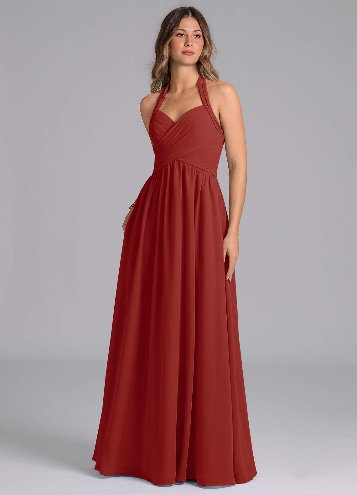 Klänning av A-Linje i Chiffong Sweetheart halsringning Terrakotta
