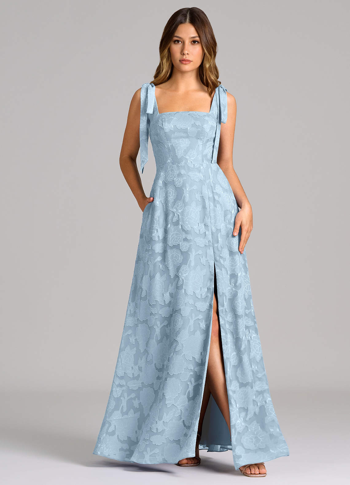 Klä av A-Linje i Blommig Utbrändhet med fickor Himmelsblå